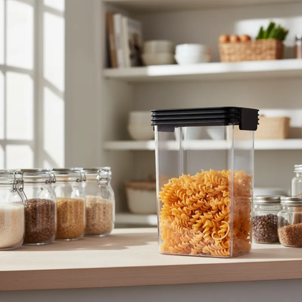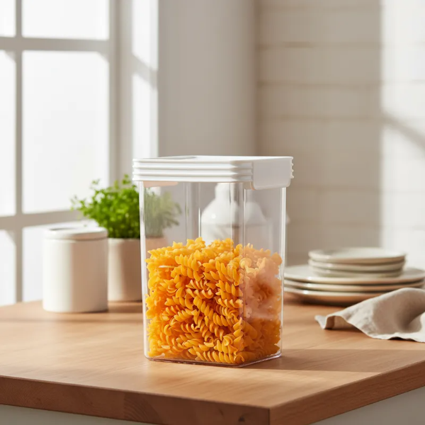 Sistema de almacenamiento en seco hermético, envase acrílico y tapa con sello de silicona, apilable. Fácil apertura, se deslizan las trabas de costado hacia arriba y hacia abajo para un sello hermético. Ideal para alimentos secos, conserve por mas tiempo y sin perdida de sabor los alimentos.