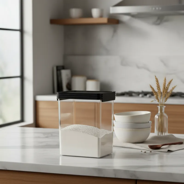 Descripción: Sistema de almacenamiento en seco hermético, envase acrílico y tapa con sello de silicona, apilable. Fácil apertura, se deslizan las trabas de costado hacia arriba y hacia abajo para un sello hermético. Ideal para alimentos secos, conserve por mas tiempo y sin perdida de sabor los alimentos.