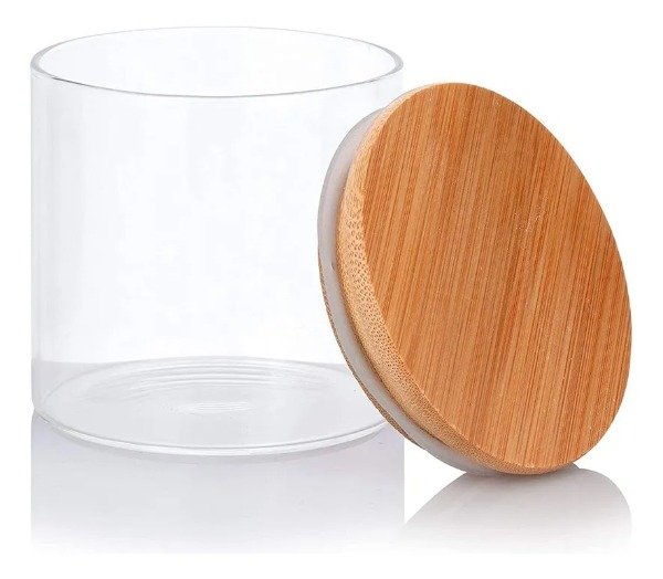 Frasco de Vidrio Organizar Multiuso Hermético Tapa de Bambú 10x20