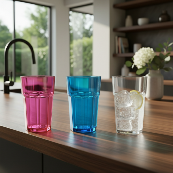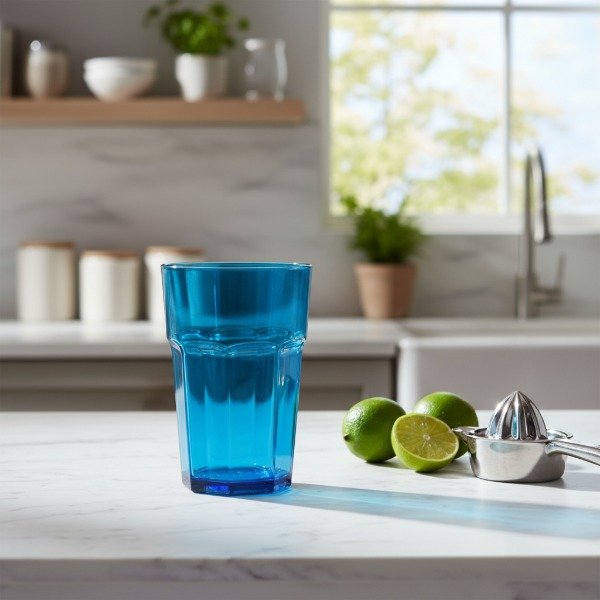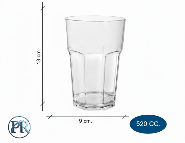 Producto: Vaso Facetado Bristol Acrilico 520 cc Cristal, Rojo y Azul